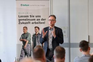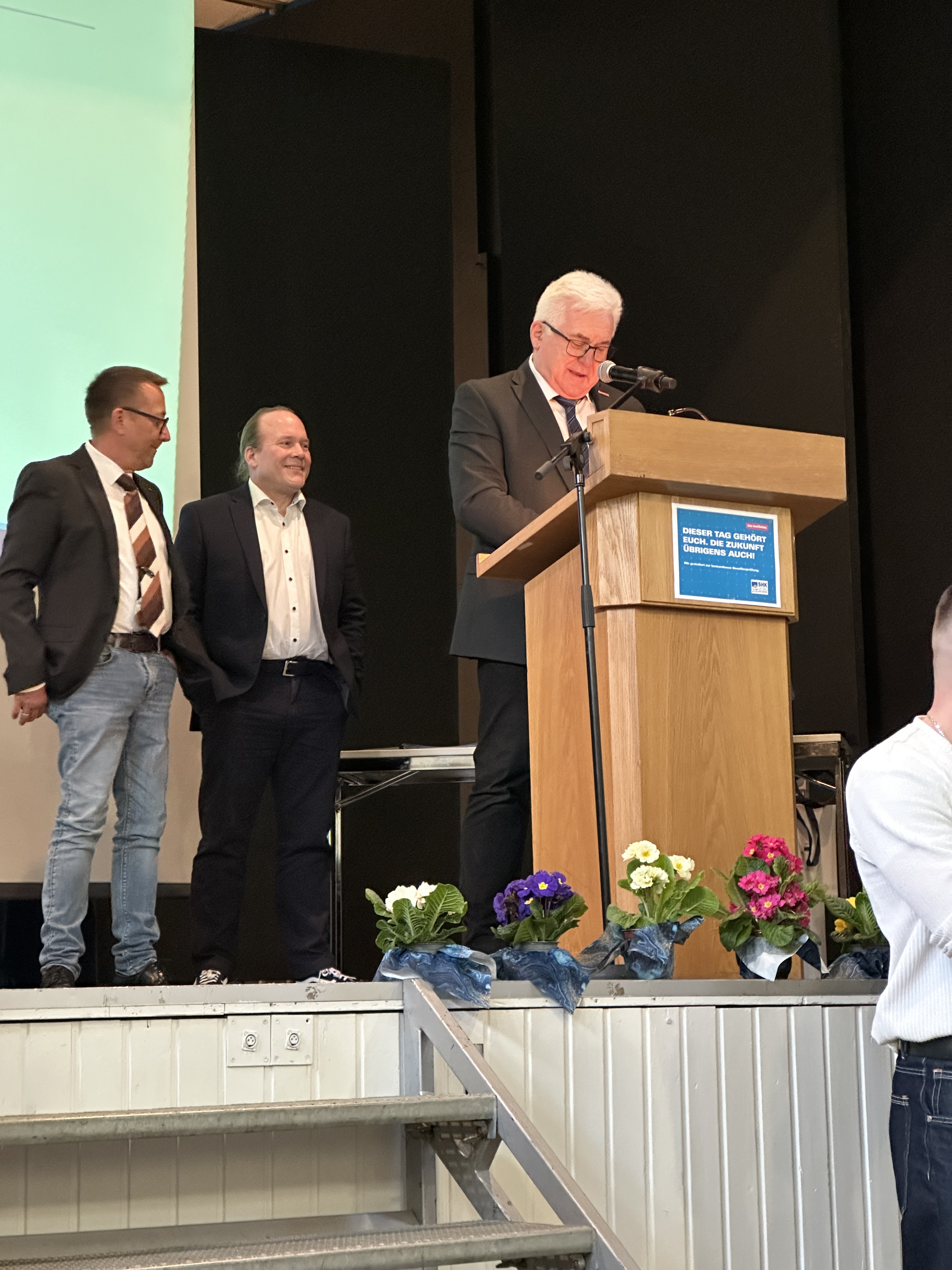 Obermeister Rath lobte Einsatz und Engagement der frischgebackenen SHK-Gesellen: „Mit der bestandenen Gesellenprüfung haben Sie bewiesen, dass Sie Ihr Handwerk beherrschen und bereit sind, als vollwertige Fachkräfte ins Berufsleben einzutreten.“ Er hob hervor, dass die jungen Fachkräfte mit ihrer Ausbildung im SHK-Bereich mitten in der gesellschaftlichen Debatte stehen. Während die Politik oft nur diskutiert, seien sie diejenigen, die handeln: „Sie sind nicht mehr nur Handwerker, Sie sind Klimaretter, Techniker und Experten für die Lebensqualität in unseren Häusern.“ Ein besonderes Dankeswort richtete Rath an die Ausbildungsbetriebe, die Familien der Auszubildenden und die Lehrkräfte der Berufsschule. „Dass unsere Absolventen so hervorragende Ergebnisse erzielen konnten, verdanken wir auch der exzellenten Ausbildung an der Franz-Oberthür-Schule!“