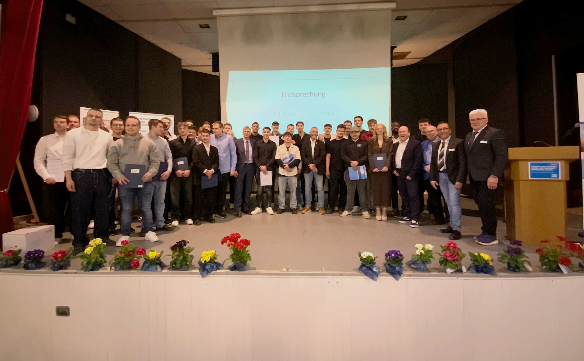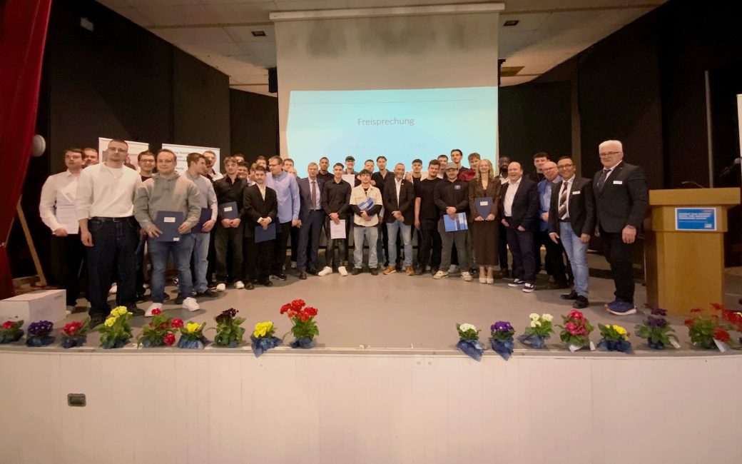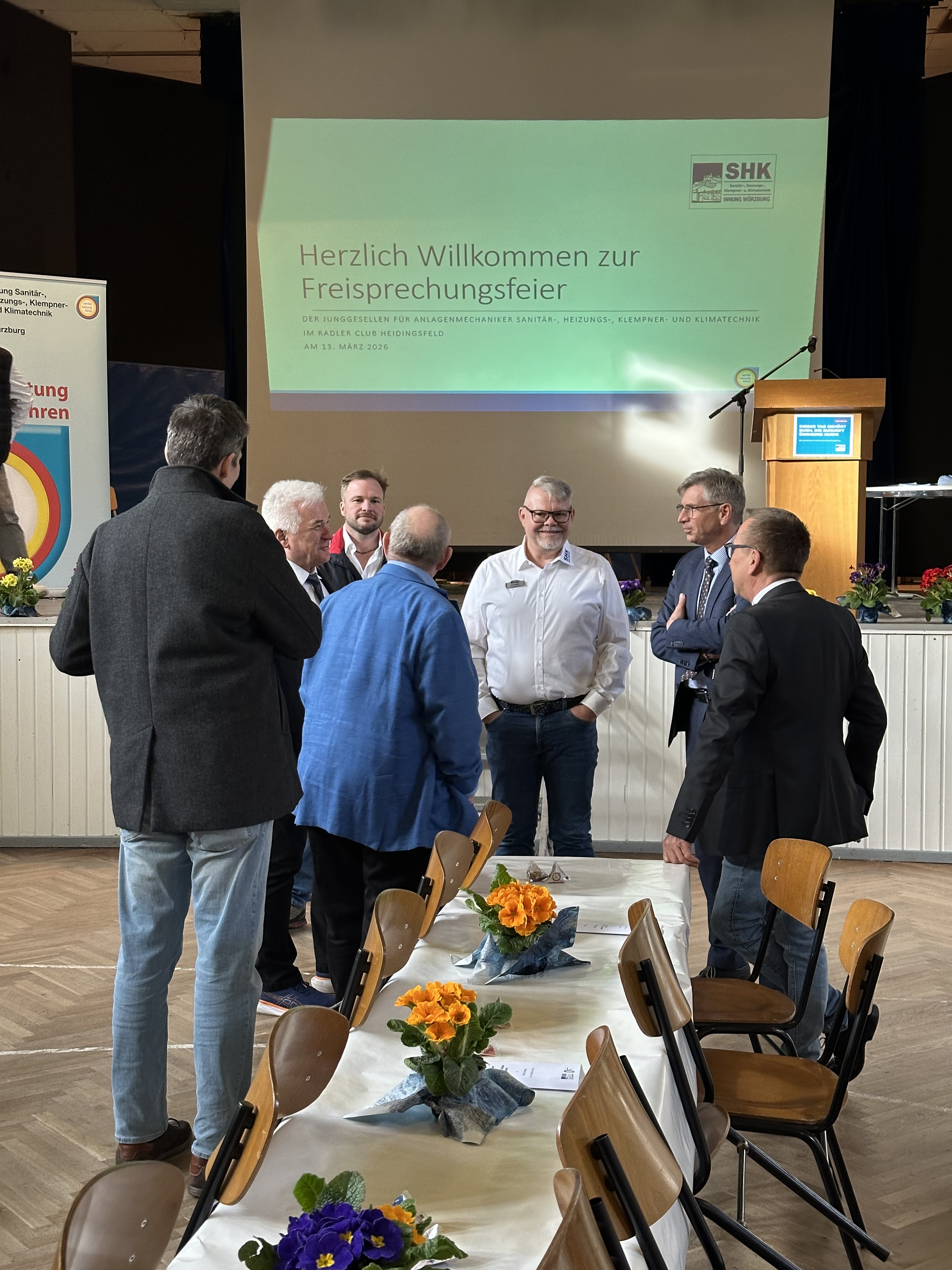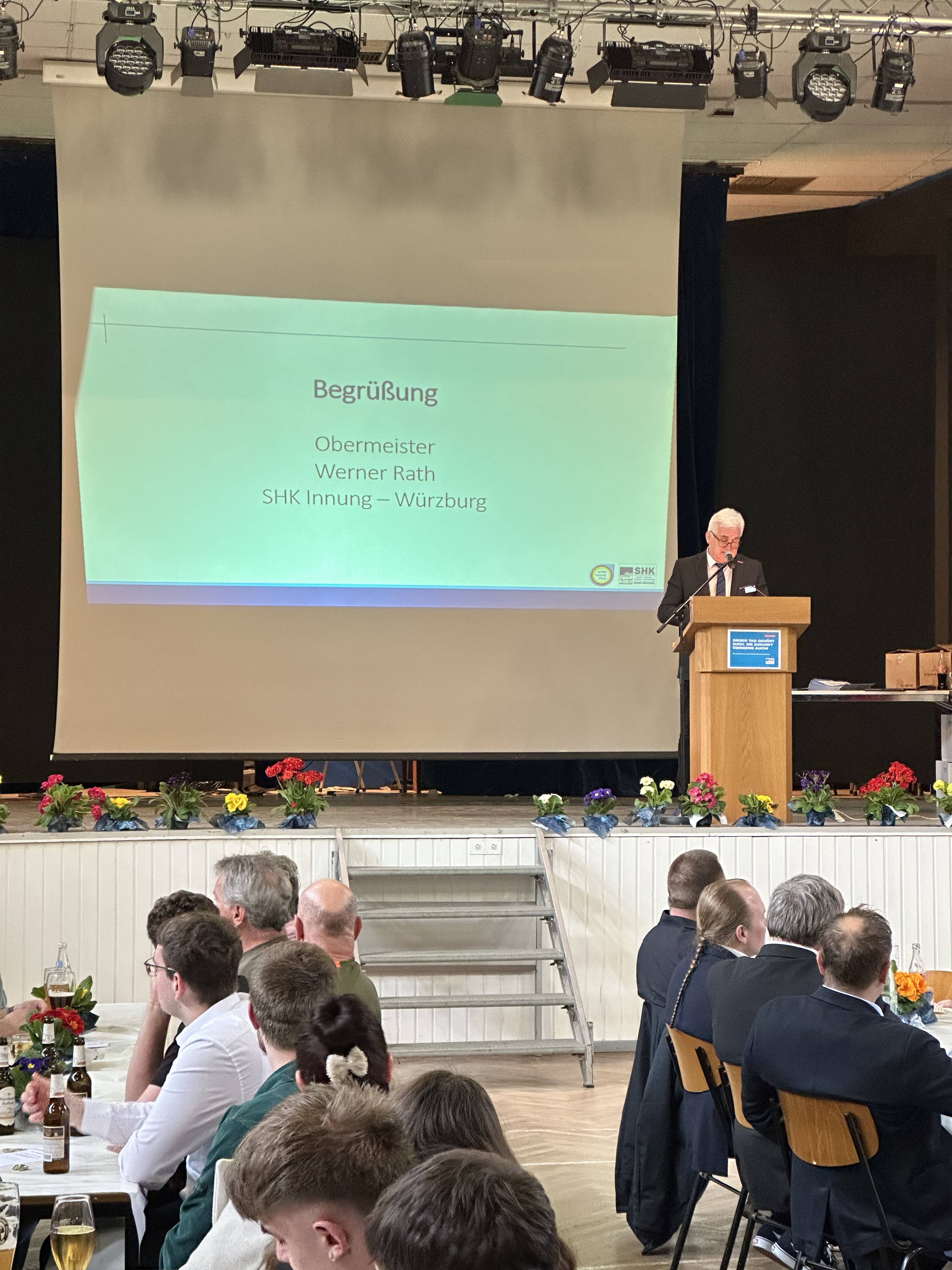 Handwerkskammerpräsident Michael Bissert, selbst Meister im SHK-Handwerk, gratulierte ebenfalls. Er betonte die Herausforderungen und Chancen dieses Berufs: Wer in diesem Gewerk arbeitet, schafft mit eigenen Händen, hilft Menschen im Alltag und installiert Lösungen für die Zukunft. Die Freisprechung sei nicht nur ein Abschluss, sondern auch eine Verpflichtung, die Werte des Handwerks weiterzugeben. Diesen Worten schloss sich Kreishandwerksmeister Martin Strobl an. Er forderte die Gesellen auf, dran zu bleiben, sich weiterhin fortzubilden, ehrenamtlich zu engagieren und das Handwerk aktiv zu leben. Abschließend würdigte Tobias Selzam von der Franz-Oberthür-Schule die hohe Komplexität des SHK-Berufs, der sowohl in der Schule als auch im Betrieb große Anforderungen stelle. Mit der Freisprechung seien die Absolventen nun Facharbeiter auf Augenhöhe.