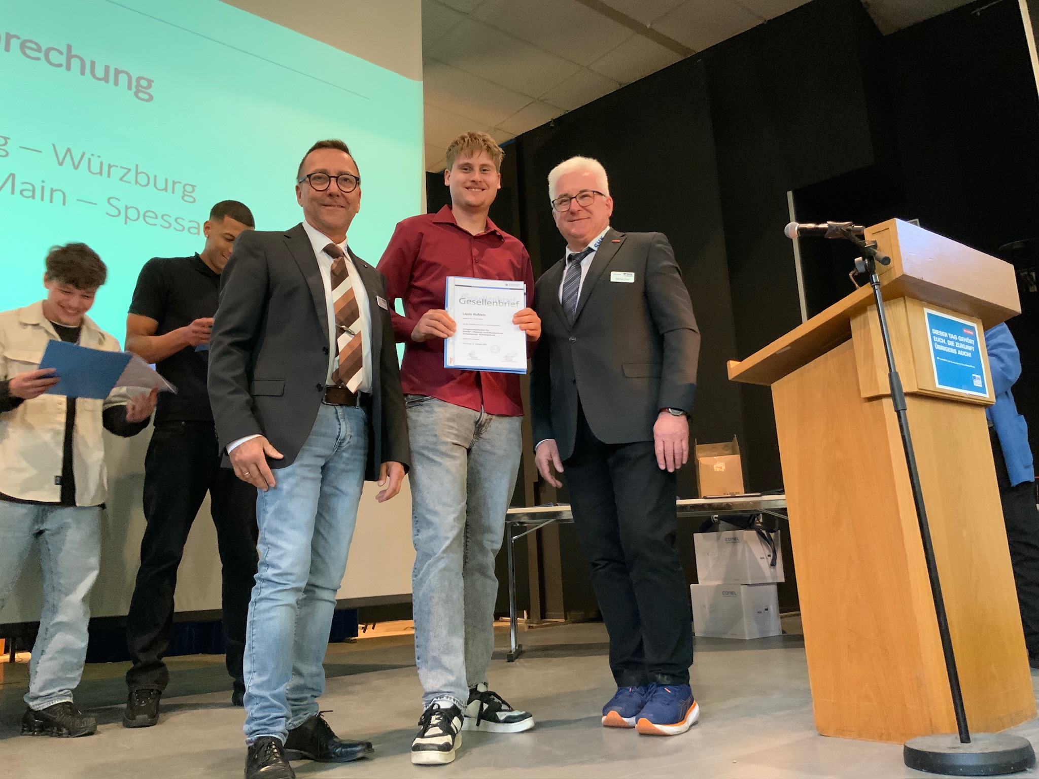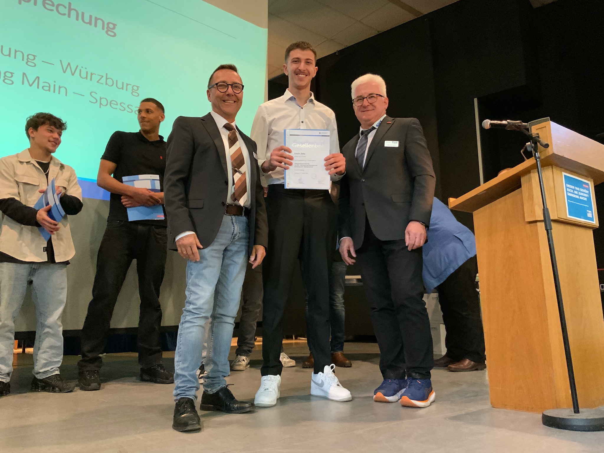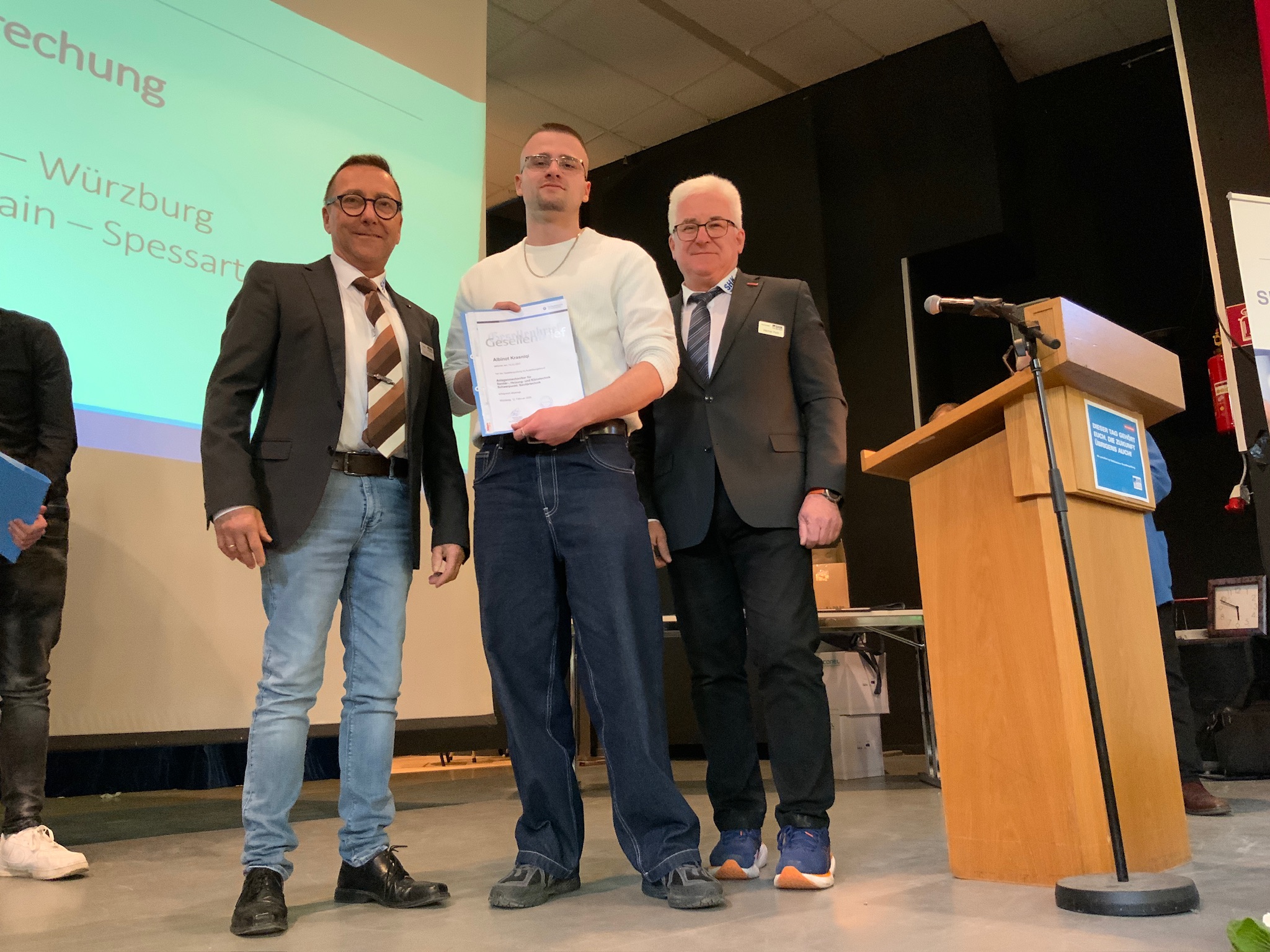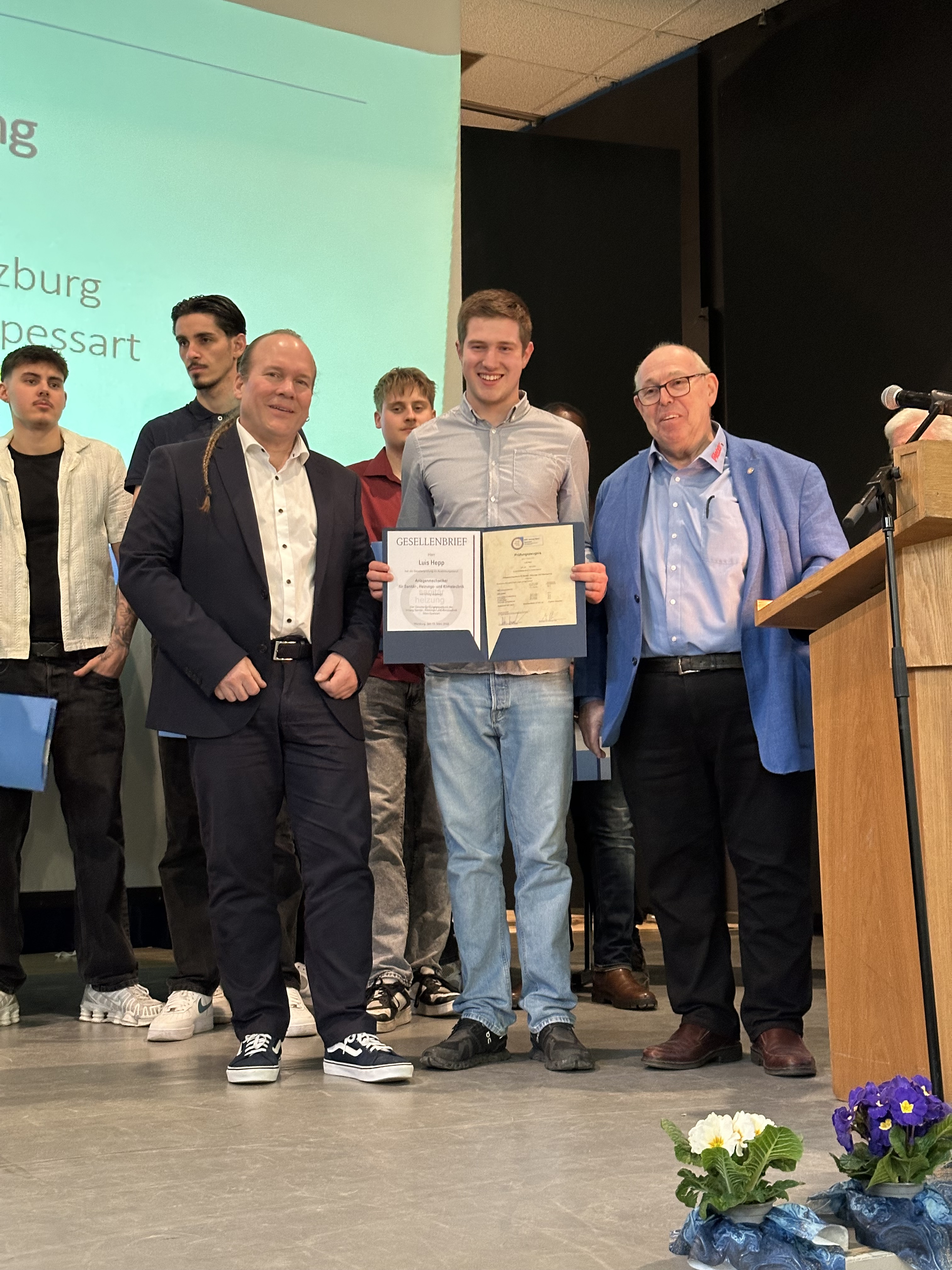 Handwerkskammerpräsident Michael Bissert, selbst Meister im SHK-Handwerk, gratulierte ebenfalls. Er betonte die Herausforderungen und Chancen dieses Berufs: Wer in diesem Gewerk arbeitet, schafft mit eigenen Händen, hilft Menschen im Alltag und installiert Lösungen für die Zukunft. Die Freisprechung sei nicht nur ein Abschluss, sondern auch eine Verpflichtung, die Werte des Handwerks weiterzugeben. Diesen Worten schloss sich Kreishandwerksmeister Martin Strobl an. Er forderte die Gesellen auf, dran zu bleiben, sich weiterhin fortzubilden, ehrenamtlich zu engagieren und das Handwerk aktiv zu leben. Abschließend würdigte Tobias Selzam von der Franz-Oberthür-Schule die hohe Komplexität des SHK-Berufs, der sowohl in der Schule als auch im Betrieb große Anforderungen stelle. Mit der Freisprechung seien die Absolventen nun Facharbeiter auf Augenhöhe.