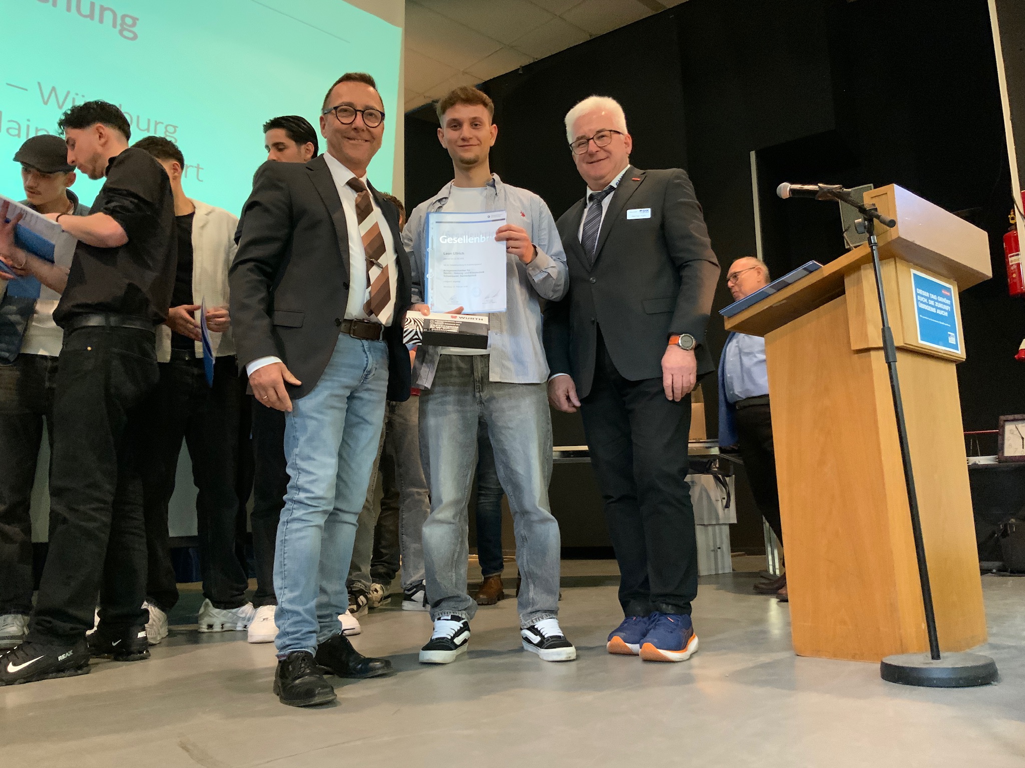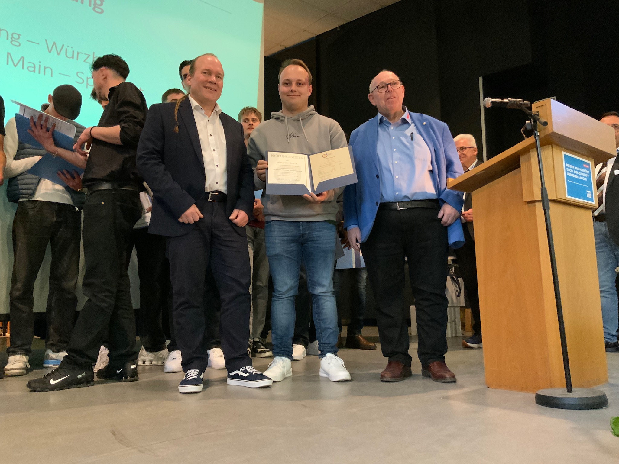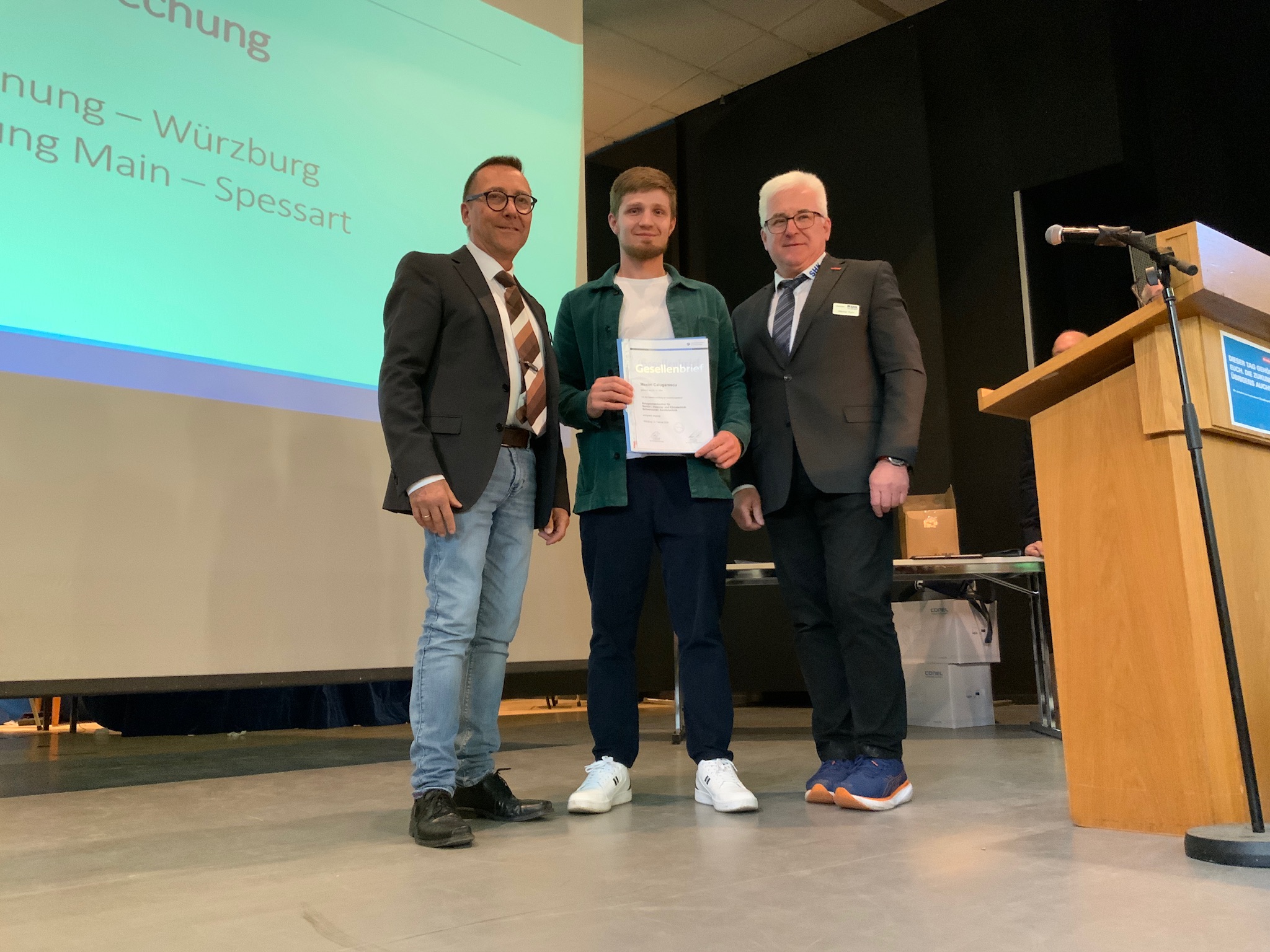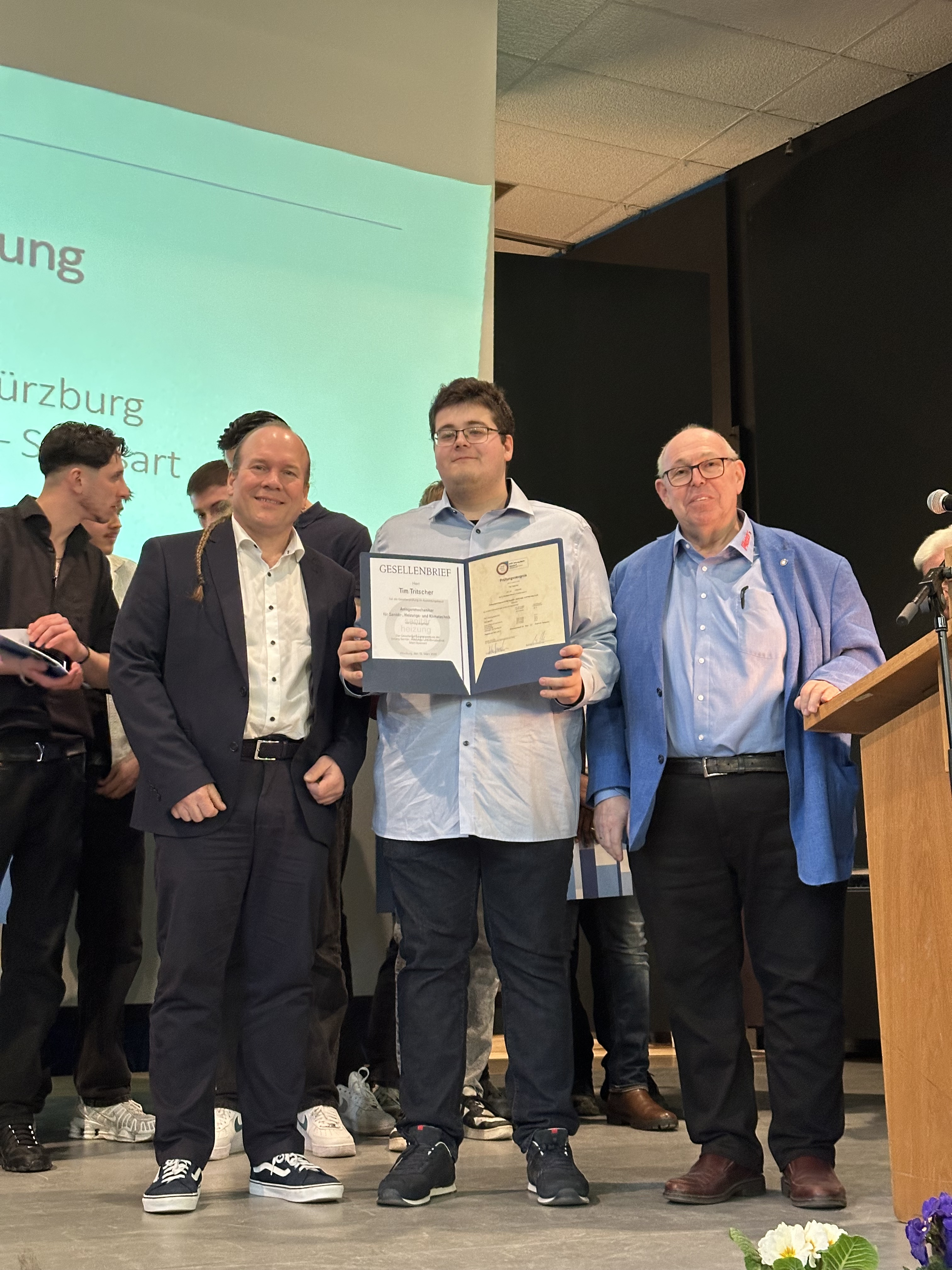Handwerkskammerpräsident Michael Bissert, selbst Meister im SHK-Handwerk, gratulierte ebenfalls. Er betonte die Herausforderungen und Chancen dieses Berufs: Wer in diesem Gewerk arbeitet, schafft mit eigenen Händen, hilft Menschen im Alltag und installiert Lösungen für die Zukunft. Die Freisprechung sei nicht nur ein Abschluss, sondern auch eine Verpflichtung, die Werte des Handwerks weiterzugeben. Diesen Worten schloss sich Kreishandwerksmeister Martin Strobl an. Er forderte die Gesellen auf, dran zu bleiben, sich weiterhin fortzubilden, ehrenamtlich zu engagieren und das Handwerk aktiv zu leben. Abschließend würdigte Tobias Selzam von der Franz-Oberthür-Schule die hohe Komplexität des SHK-Berufs, der sowohl in der Schule als auch im Betrieb große Anforderungen stelle. Mit der Freisprechung seien die Absolventen nun Facharbeiter auf Augenhöhe.
