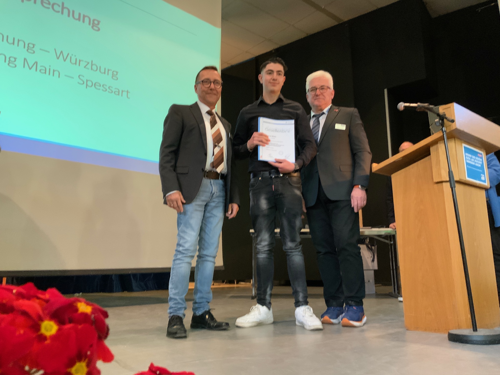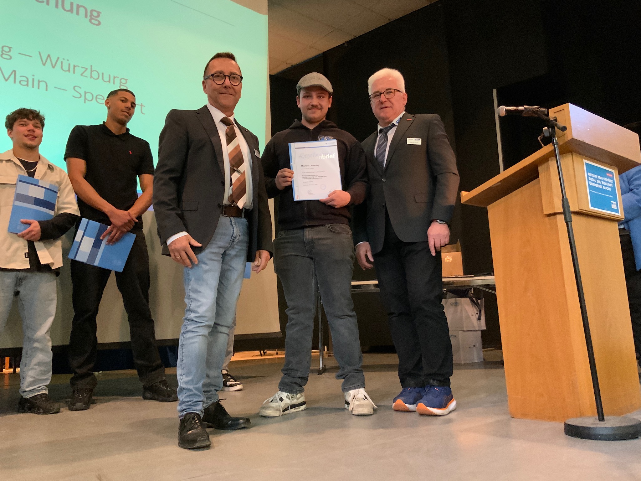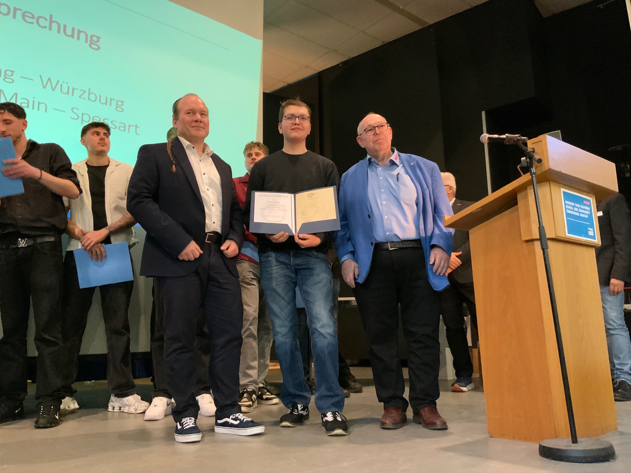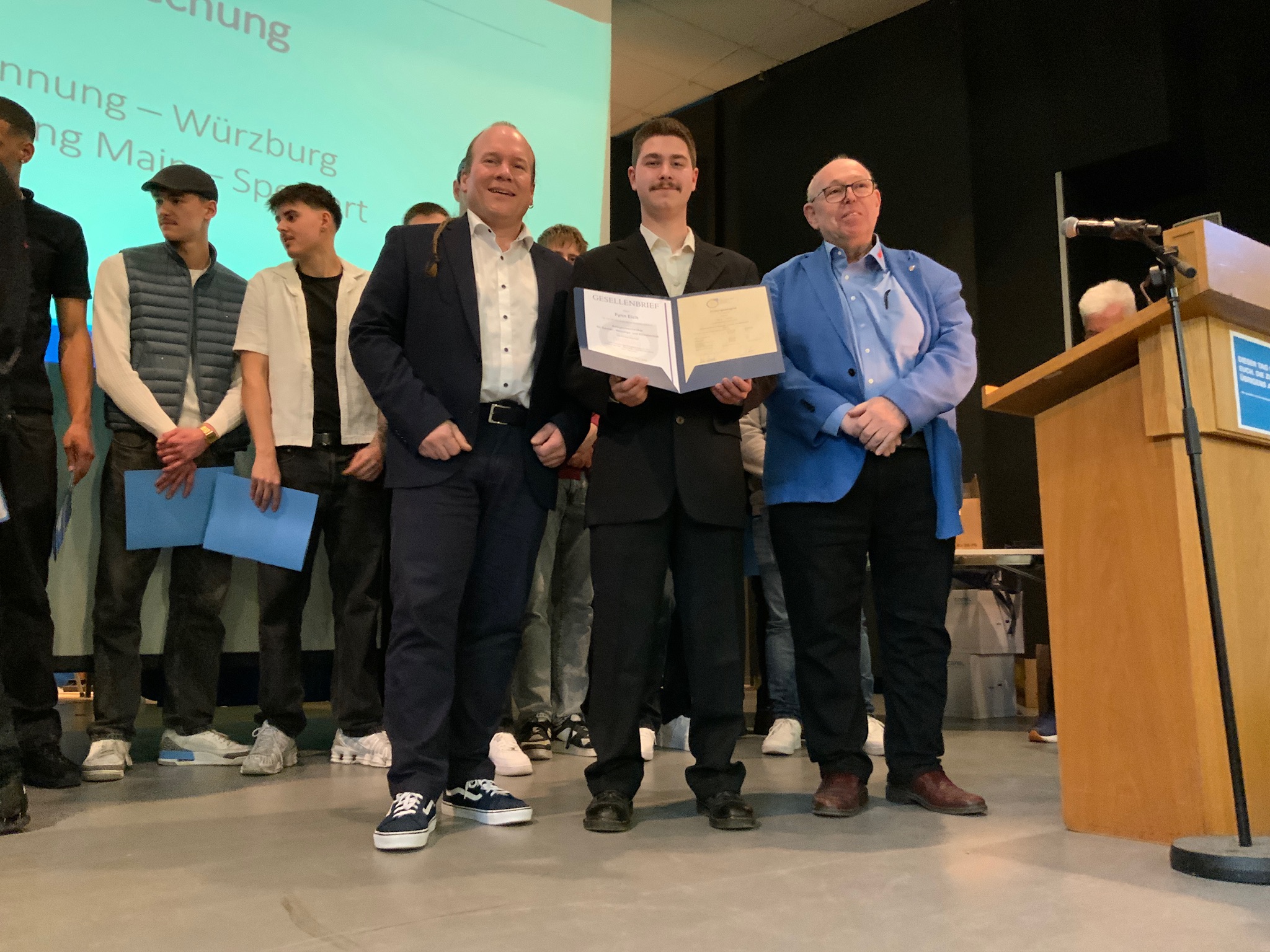 Die Freisprechung von Handwerksgesellen gleicht fast einer Bescherung zu Weihnachten: Die Spannung steigt bis zur Übergabe der Gesellenbriefe ins Unermessliche und fällt erst, wenn der Junghandwerker seinen Leistungsnachweis in den Händen hält. So geschehen am Freitagnachmittag (13.03.26) als die Obermeister Werner Rath (Innung Würzburg) und Johannes Reber (Innung Main-Spessart) im Radlersaal die lang erwarteten Gesellenbriefe an 29 Junghandwerker aus Würzburg und 13 aus Main-Spessart überreichten.
